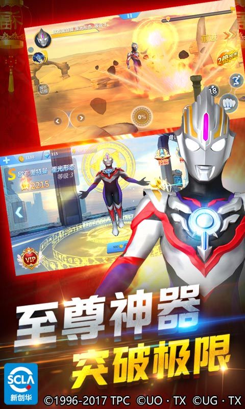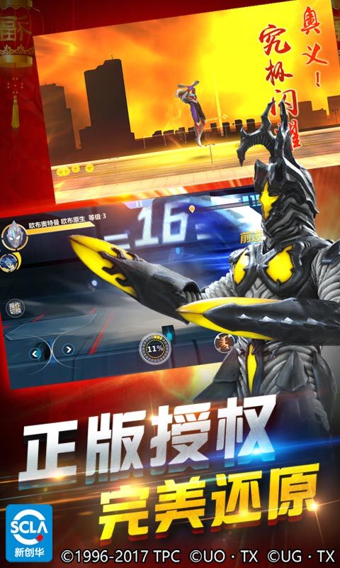 2018超爽格斗游戏《奥特曼正义降临》震撼来袭,无限连击体验华丽战斗!玩家将在游戏中化身为欧布、迪迦、艾克斯等一个个熟悉的奥特战士,对抗邪恶的怪兽军团,一起保卫我们的美好地球!更有全新的欧布奥特曼超越形态登场!