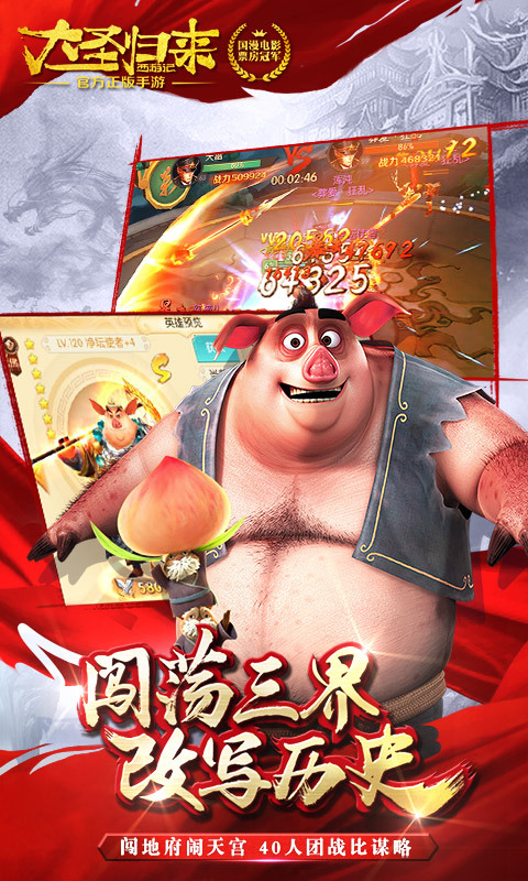 《西游记之大圣归来》9.56亿国漫票房冠军电影改编,全新天宫吃鸡新玩法-绝地求生,胜者为王。游戏高度还原电影剧情,全程采用原版配音,呈现最顶级视听盛宴。征战天宫,注册即送首周2万元宝、首月10万元宝,海量福利助你轻松玩转三界,再续大圣传奇!