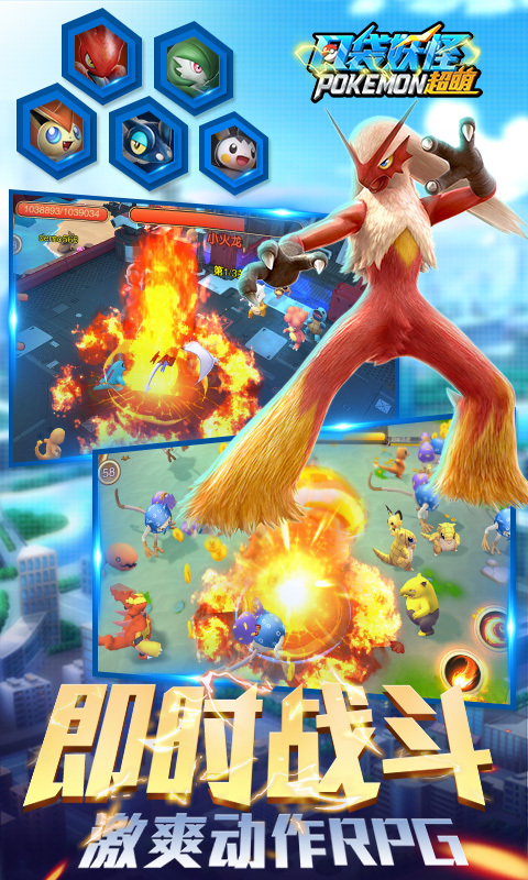 2、ARPG即时战斗系统 不同于过往口袋妖怪题材手游以卡牌搭配策略为核心的回合制战斗系统,《口袋超萌》采用的是新颖灵活的即时战斗系统,更加考验玩家们的反应能力。