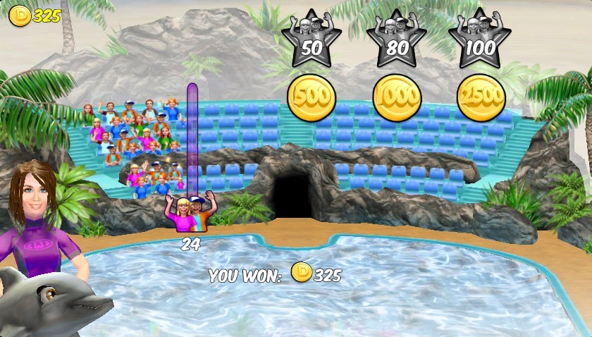 《我的海豚秀 My Dolphin Show》是一款休闲游戏。开始表演吧!这是您像海豚样尽情溅射水花的大好机会。 您可不必弄湿就成为海洋世界的明星! 跟着训练员的指导,“鳍”进人们的心中。