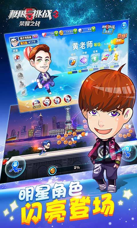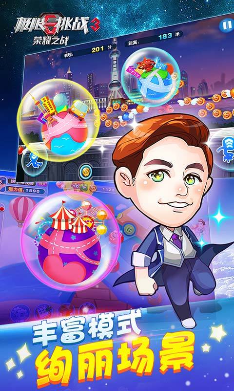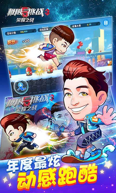 《极限挑战3荣耀之战》是一款横版跑酷类型的游戏以极限挑战节目为基础制作,在现代的都市进行的极限跑酷。 游戏以横版跑酷为主要表现方式,结合了剧情模式,经典模式和挑战模式等多种玩法,让玩家可以自由在游戏内进行操作与交互。 完美细腻的画面、强大独特的角色、简单流畅的操作、轻松畅游的时间、多变类型的场景,让你感受到“飞”一般的跑酷体验。