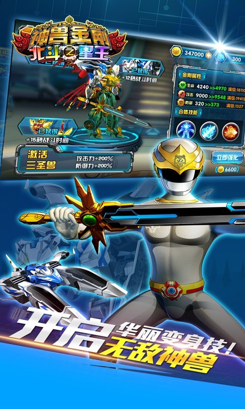 正版IP授权,炫酷动作手游《神兽金刚之北斗星王》震撼袭来! 新的黑暗力量再现地球,天神战队强势回归。 超酷的机甲,绚烂的特色玩法! 高清3D画面,无限连招,近身血战畅爽不停!来体验最激烈的格斗冒险! 正义的源泉天神堡垒,天之行者最强合体,合体技称霸宇宙 地球重大危机,快加入天神部队,一起来战胜黑暗!