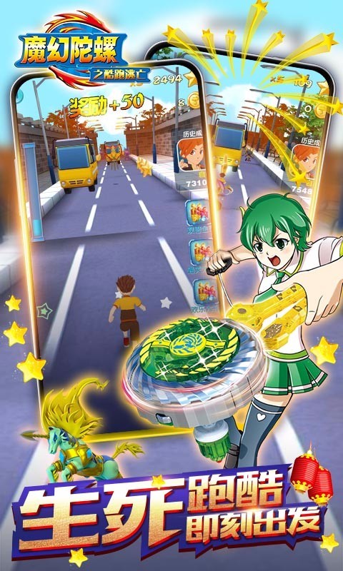 《魔幻陀螺之酷跑逃亡》是一款结合经典跑酷玩法和创新的陀螺玩法的3D跑酷手游。玩家控制人物在地图中躲避障碍物,并可控制人物触碰陀螺对敌人发起攻击;还可为人物携带斗兽辅助战斗;更可进行斗魂觉醒,释放人物的特殊技能,炫酷华丽!整个游戏充分结合原作动画的元素,加上对应设计的斗兽系统,让整个《魔幻陀螺》完美的呈现在玩家面前!