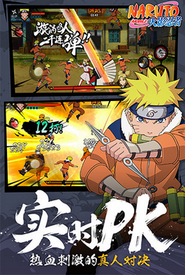 2、忍术格斗,酣畅淋漓的无限连打《火影忍者》手游独有的无蓝条设定,在符合火影忍者原著世界的同时,更将带给玩家更为爽快的格斗体验。玩家可以自由地使用原著中的忍术,通过组合忍术和体术追击,可以实现不间断的连打体验。游戏奥义的设定也与其他同类游戏截然不同,玩家每施放一个普通忍术即可获得一个格斗点,积满4个格斗点以后就可以施放奥义大招。奥义大招不仅有全屏级的震撼特效且能带来巨大的伤敌效果。另一方面,为了活灵活现地呈现原著中的每一个忍者,《火影忍者》手游每一个忍者的忍术设定都体现出了对于忍者的性格特点。如:鹿丸是一个智商超群的策略型忍者,擅长影子模仿术。游戏中,鹿丸可以使用影子模仿,勾住敌进行吊打。他的好搭档丁次则呈现截然不同的战斗风格,他擅长肉搏,使用倍化术技能后,整个身体膨胀,仿佛一个肉弹车,完全符合原著。