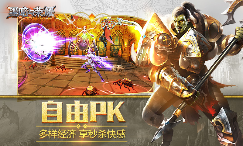 《黑暗与荣耀》是由天拓游戏独代,成都星罗互动研发的暗黑魔幻题材3DMMORPG手游巨制!游戏采用Unity3D引擎技术配合殿堂级音乐效果,为玩家打造了一个充满欧美魔幻元素的暗黑异世界。全放开式即时PK遭遇战,让你随时随地,爽快暴击!多人载具攻城、公会领地争夺、跨服BOSS战,让你享受强交互团战的热血激昂!同时还有Avatar变身战斗,千种霸气状态自由切换,神魔附体技能华丽扫荡,暗黑魔幻世界等你征服!