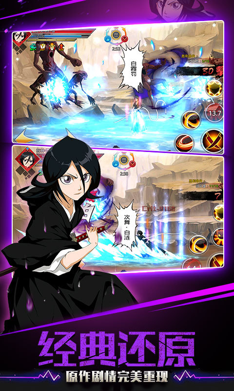 经典二次元格斗手游《灵魂撕裂》主打华丽而热血的横版动作玩法,在这里你将操控死神人气角色,修炼鬼道、灵压、静血装等特殊能力,然后通过格挡-瞬步-反击打出漂亮的浮空连招击败你的对手,成为拯救尸魂界的救世主!