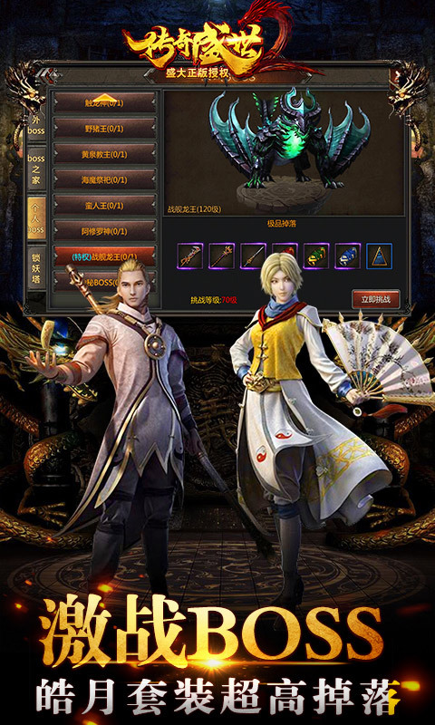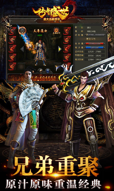 盛大正版授权传奇手游《传奇盛世2》震撼上线!经典战、法、道三职业,还原纯正战斗风格!再续盛世引领传奇!玛法大陆风云再起,战、法、道横空出世,龙城战斗一触即发,这里有爽快传奇战斗,真实的兄弟情义,兄弟们为你而战!