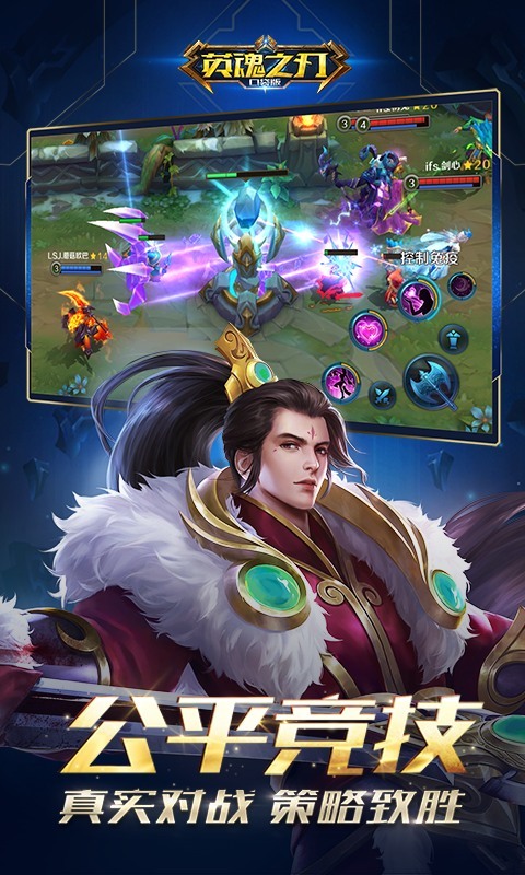 欢迎来到英魂之刃,与大神玩家一起,加入到这款最公平的多人在线竞技手游中来! 游戏保留了高低地、迷雾、传送、装备主动技能等MOBA经典设定,让您在5v5排位、匹配中尽享战斗快感;冒险模式、三方乱斗、英魂大逃杀带来全新的团队博弈与策略对抗,体验脑力与手速碰撞的无穷乐趣;还有更多游戏模式任您选择,快带上好友一起加入战斗吧!