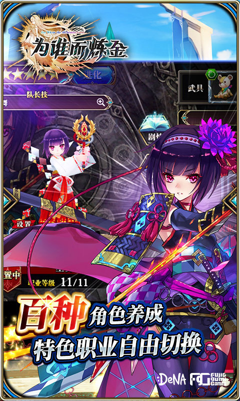 荣获千万好评的「三次元空间战略」SRPG,战略与养成一体的SRPG手游巨作《为谁而炼金》! 战略∞无限: 百十位英灵召唤养成,多元的职业选择和跨职业的技能搭配,『平面×高度×方向×属性×职业×技能』战略六大元素的完美融合。没有强的组合,只有无限的可能! 视听的享受: 环环相扣的故事剧情,专业画师精心绘制的人物,数十位日本人气声优倾力献声,多位日本知名监制携手打造的游戏动画与音乐。这不只是一款游戏,而是由您去演绎的新番