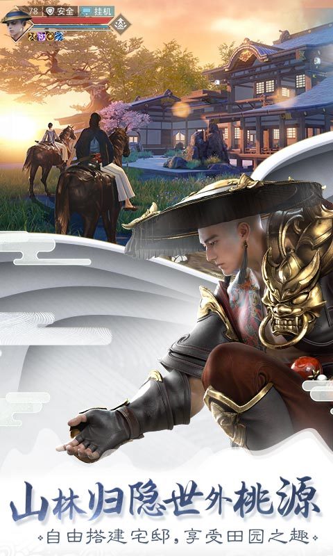 3、非一条龙,百种玩法! 每日可获取经验设置上限,不需要挂“一条龙”,丰富的游戏内容提供了高度可选择性。游山玩水掏鸡窝,抓马驯牛逛青楼……玩家不必为升级而去完成自己不喜欢的任务,休闲党、风景党亦可从容惬意地探索江湖世界。