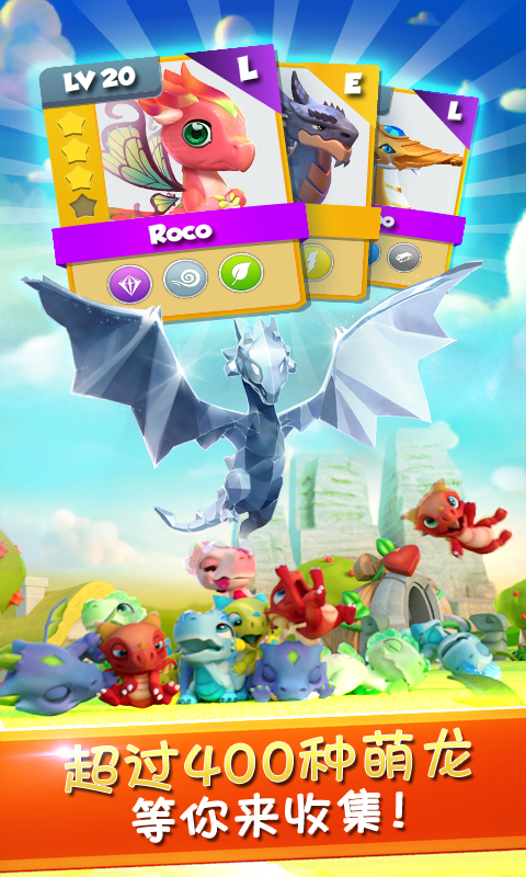 在包罗万象的游戏中繁育靓龙参加战斗,开启精彩的冒险之旅!与栩栩如生的萌龙互动嬉戏,在龙之岛修建栖息地,在妙趣横生的小游戏中喂养幼龙,带着它们去探索广袤世界!还想更过瘾?那就去3对3的战斗中挑战好友或维京人吧!让最强大的成年龙杂交来获取新的龙种以完成收藏,甚至还能获得神秘的传奇龙哟!