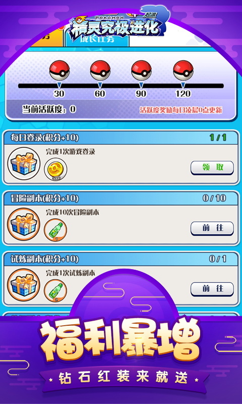 3、乐园:固定出生点,提高契约精灵触发概率,步数600,20个紫品精灵球
