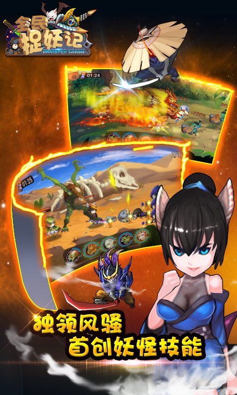 《全民捉妖记》是一款以亚洲神话为基础,历史人物、传统妖怪养成与策略类RPG相结合的游戏。 整个游戏以“任务”系统为纽带,串联“即时战斗策略操作”、“化妖魔召唤副将”、“妖怪技能召唤与释放”、“搭配主角单件换装”四大特色系统,再辅以“好友助阵”、“制作装备”、“宝石”等子系统,给玩家营造了一个丰满充实的奇幻世界。