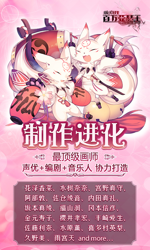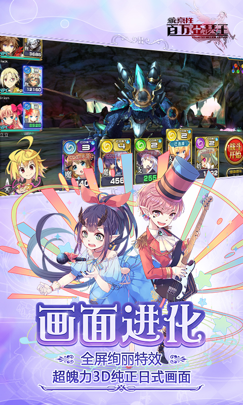 《乖离性百万亚瑟王》是由日本SQUARE ENIX INC开发的一款充满二次元幻想元素的卡牌RPG类手机网游,在制作阵容方面由镰池和马担任编剧,邀请了阿部敦、花泽香菜、丰崎爱生、钉宫理惠、雨宫天、户松遥、喜多村英梨、福山润、樱井孝宏等声优担任角色配音,同时维持使用骑士卡片战斗的基本概念,采用了3D角色模组和即时制的4人协力战斗等全新游戏模式。