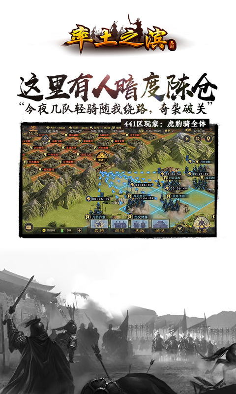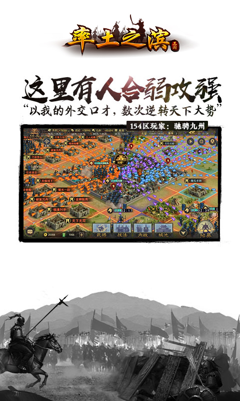 【逐鹿天下乱世强者合纵连横】 您是一方强者,与全服玩家合纵连横,不仅可共享资源收益,还可借地出兵、共同攻占城池、互相解救危难。调虎离山、围魏救赵、深入敌后等多种古今战法都可借助同盟实现,一个强大的同盟可为你扫清君临天下的障碍! 统万军而吞天下,群雄乱世逐九州。现在就加入《率土之滨》,在这大争之世建功立业吧!