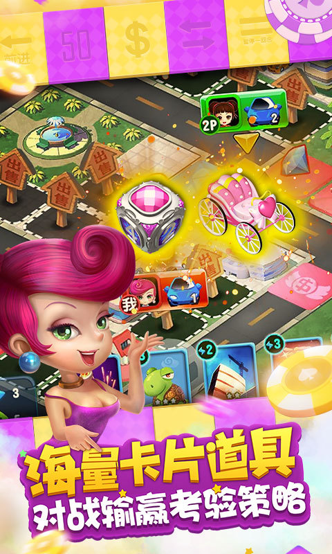 -千万粉丝,策略对决 值得一提的是,《大富翁9》对经典的卡牌玩法进行了颠覆性的改造。每名经典角色都将有自己的专属卡牌,每个玩家也都将拥有自己的专属卡组!你将可以通过卡牌搭配、组合尝试,获得独属于你的大富翁战术。并借此在日常对战,或是大富翁专业赛事中,求得连胜,获取高排名,得到现金与真金奖励!
