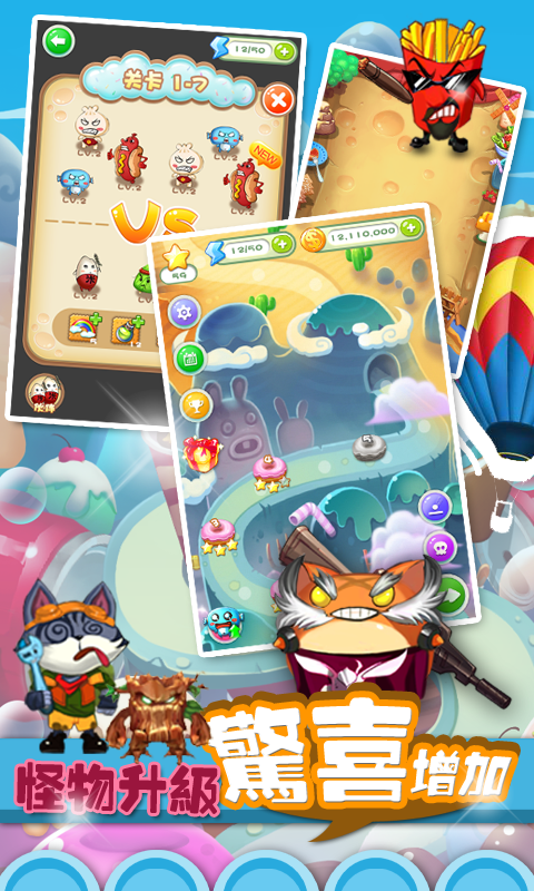 《美食特工队》是一款休闲益智类的弹射游戏,游戏风格题材以食物为主,借助奶酪、糖果等美食场景增加游戏的趣味性。 小米和蛋糕等精美食物作为游戏的主角,将由玩家操纵射击各种来袭的呆萌怪物。紧张的弹射操作将给玩家带来简单、新颖,而又爽快、刺激的游戏体验。游戏将展现给玩家精致的游戏画面,同时提供丰富多样的关卡体验。