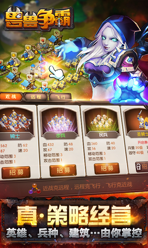 《兽兽争霸》是一款真策略slg巨作,游戏操作轻度,策略丰富,绿色公平,一定让你爱不惜手!