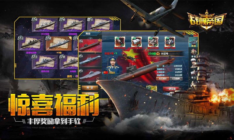 巅峰对决,荣耀起航!战,无止境! 冠军联赛登场,上百军团混战厮杀;红色配件开放,爆表战力,谁可匹敌?新增橙色战舰“苏联级”,大刀阔斧,力战八方。 经典海战,跨时代重现! 真实还原一战、二战海战历史,珍珠岛海战、中途岛海战、莱特湾海战等众多经典海战供您体验,感受战舰集群对决带来的激情与征服世界的快感! 传奇名舰,高精度神还原! 二百多艘传奇名舰集合待命,潜艇、航母、战列舰、驱逐舰、巡洋舰等等各色战舰一应俱全,大和、俾斯麦、衣阿华等五星橙色战舰战力强悍,集群冲锋无可匹敌!