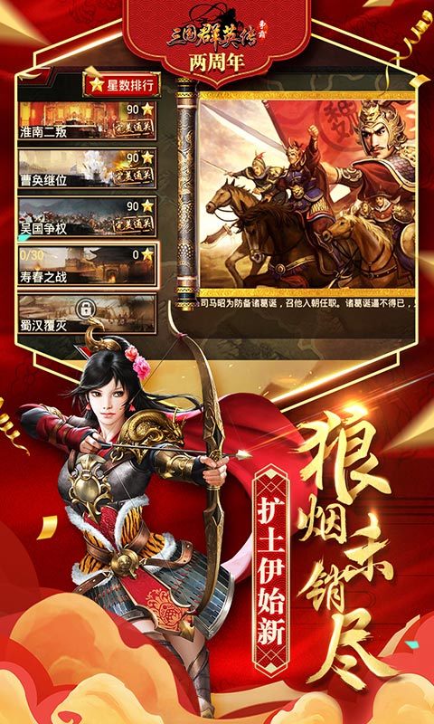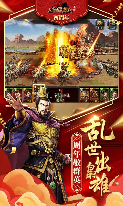 1998年,《三国群英传》首回与玩家见面,一鸣惊人,从此开启群英乱武时代!18年后,全新《三国群英传-争霸》正版手游破茧而出,延续经典游戏风格,承载一代玩家对三国的记忆!创新的玩法让主公们重返乱世,复燃熊熊战火!今年,《三国群英传-争霸》两岁了!我们将继续您的三国梦,优化自身的不足,让主公们更加酣畅淋漓。同时感谢各位主公们这两年来的支持与陪伴,我们也将继承前辈们的意志与精神,让群英精神更加强大,让三国的号角响彻天际!