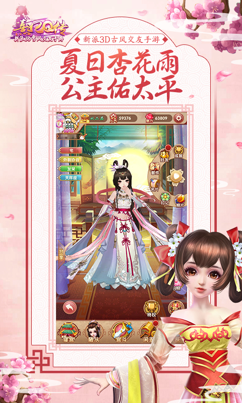 夏日杏花雨 公主佑太平 喜迎太平公主,复古大戏想玩就玩,华美时装随心换,升级养成so easy!不但能随时聊玩结交小伙伴,更可以体验跌宕剧情和梦幻游戏画面,沿着历史的清晰脉络,恣意穿梭千年曲折时光,畅游唯美古风世界,体会一把浪漫公主梦! 百变佳人 千面公主 绿树阴浓,芳草未歇,宫墙下竹露清响,少女们的隐秘心事也如同夏日的气温,渴盼而炙热。