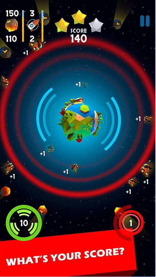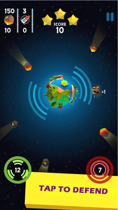 《保卫行星 Defend the Planet》是一款低模风格的防御休闲游戏,保护的对象是各种星球,点击旋转防御层抵御陨石的攻击,挺容易上手。