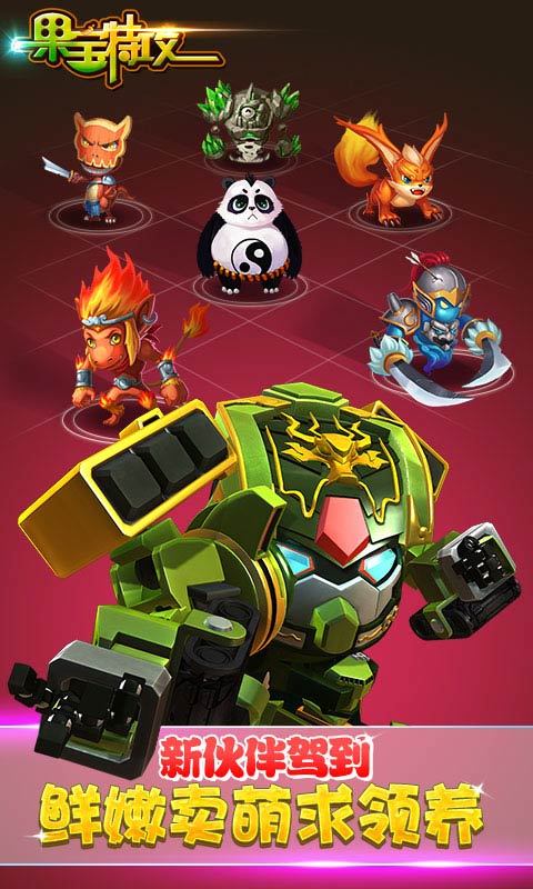 朋友们,快来选择心仪的果宝角色,穿上机甲,别忘了带上强大的小伙伴,一起出发,打败东方求败和火龙王,拯救水果世界!