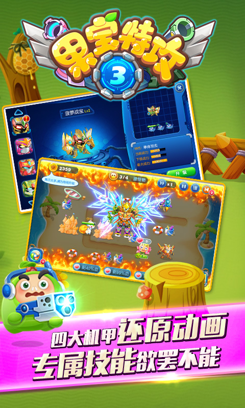 《果宝特攻3》是一款以幽默、热血IP为题材的国民萌系塔防游戏,画风清新、角色激萌、操作简单、老少咸宜,空闲时间边嗑瓜子边打小怪是最合适不过的了~!