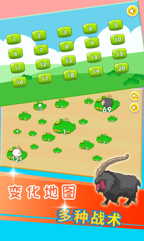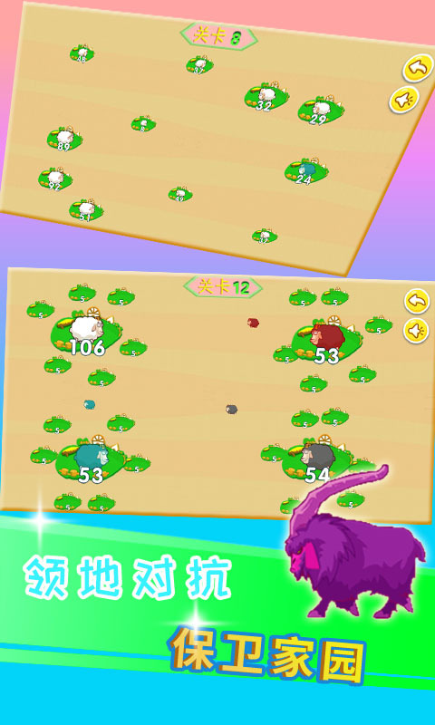 1、点击白山羊领地,拖动到其他领地,对抗驱逐其他入侵种族的山羊,完成占领,繁衍生息;