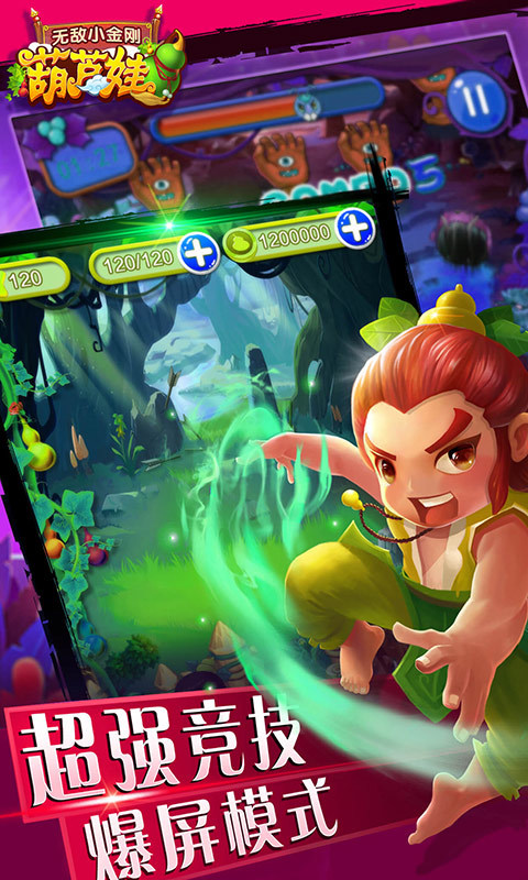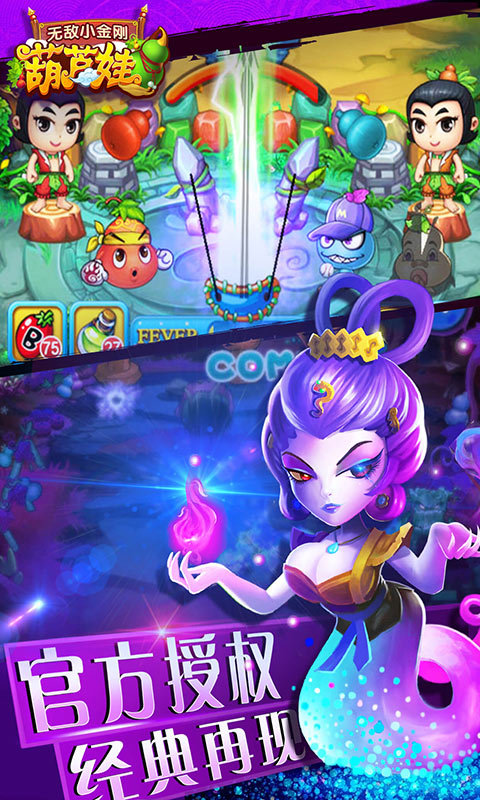 葫芦娃之无敌小金刚是一款由国内经典动画“葫芦娃”正版授权的塔防类游戏,除了会充分展现原创各角色的鲜明特点外,还融入了子弹射击玩法,让玩家领略原著经典剧情的同时,还能切身体验到一个不一样的葫芦娃冒险之旅。游戏中不同的子弹会带来不一样的攻击效果,需要玩家有策略性的安排子弹攻击敌人的同时,注意保护自己的基地。现在,妖怪又来打扰爷爷了,抓紧时间与葫芦娃们一起奋勇抗妖,保卫爷爷吧!