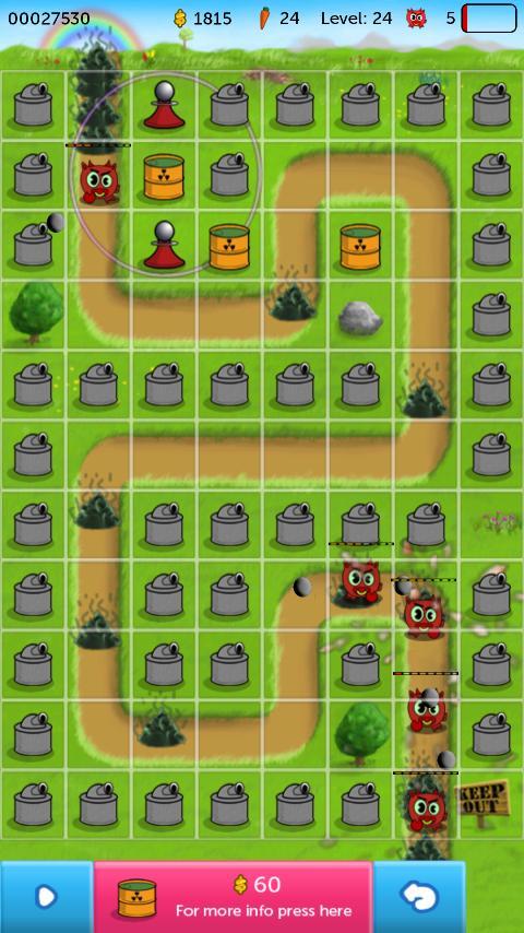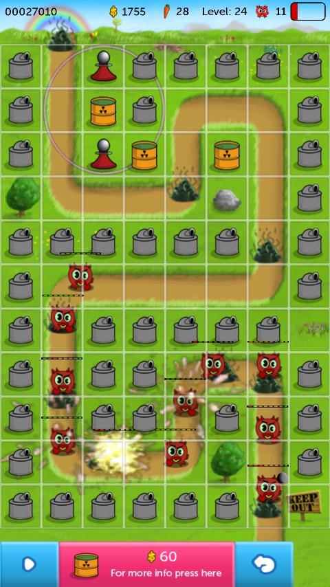 保卫萝卜是一款经典可爱的塔防游戏,在萝卜保卫战中,将会有各式各样的小兔子以及小怪物攻击后花园,玩家可以通过金钱购买相应的防御设施来阻击小怪物,成功杀死怪物后会根据怪物的级别获取相应的金钱,用来购买防御设施,本游戏同时也支持多人对战,是一款娱乐休闲的趣味游戏,希望广大玩家喜欢!