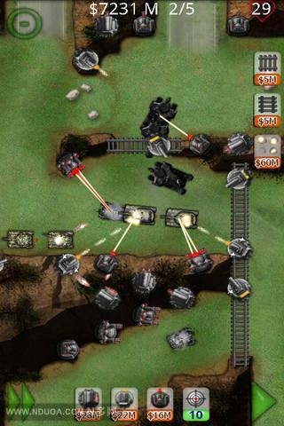 有专为炮塔设计的铁轨,有轰炸机和雷区的设置让你的防御更加坚固。 不同等级的设置让游戏的可玩性更高,精心设计的关卡总数让你玩几百小时而不会厌烦,绝对是值得体验的一款塔防类经典游戏!