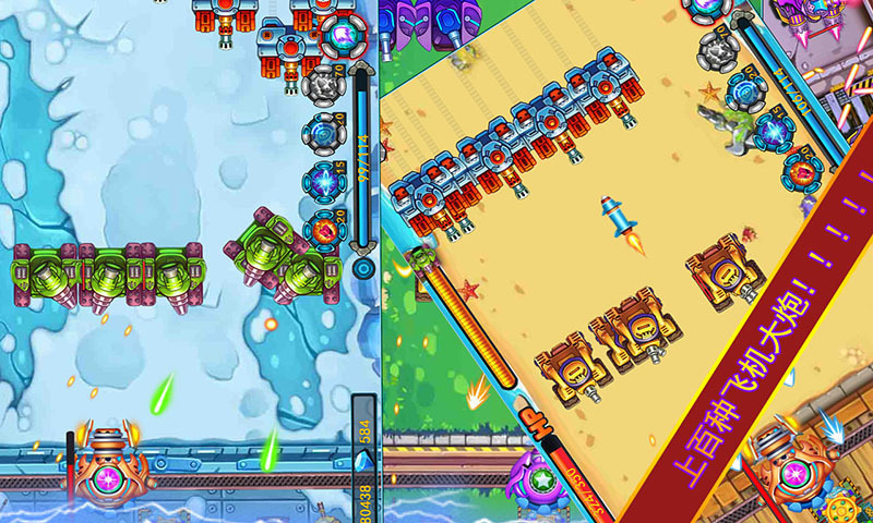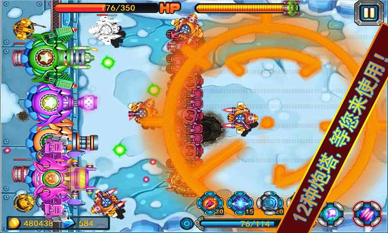 游戏中的炮塔面前有一个防护罩,利用防护罩可抵挡敌人如潮的炮弹!想安全过关,好好利用这个防护罩吧!同时,游戏内置丰富的升级系统,全面的炮弹和技能升级,给玩家前所未有的快感体验!是可玩性非常高的一款塔防射击游戏。