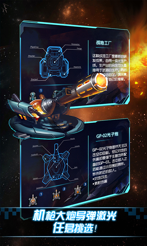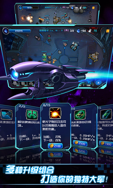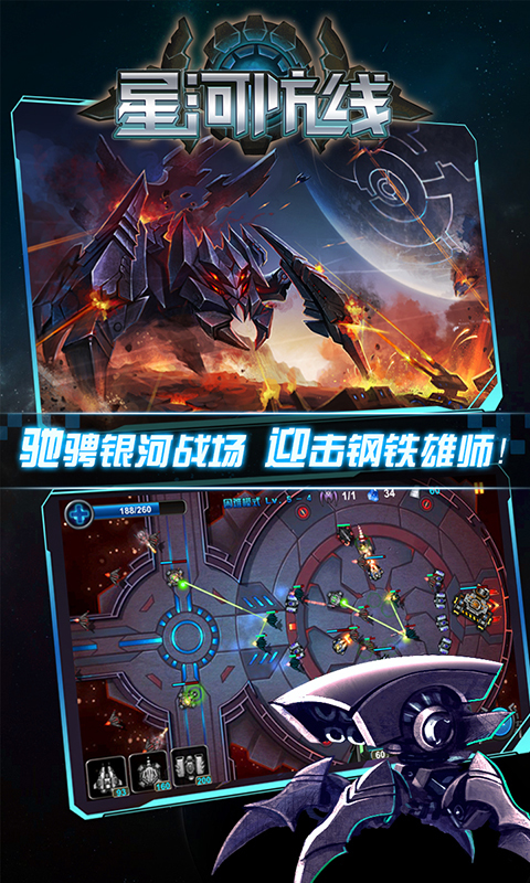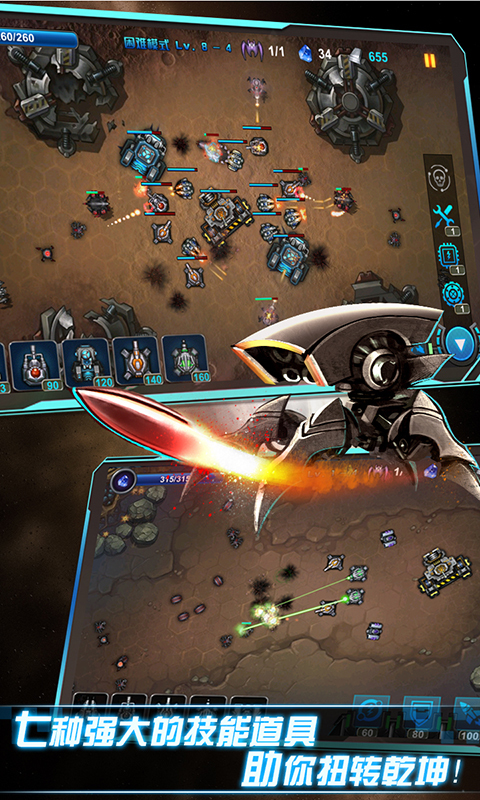 《银河保卫战》是一款策略塔防游戏。游戏虽然不大,但是画面精美。神秘的机器人军队入侵我们的星球。作为一名指挥官,你需要保持*后一道防线。现在,所有的力量都在等待您的调遣!安置防御塔,形成完美的防守,让我们消灭它们!