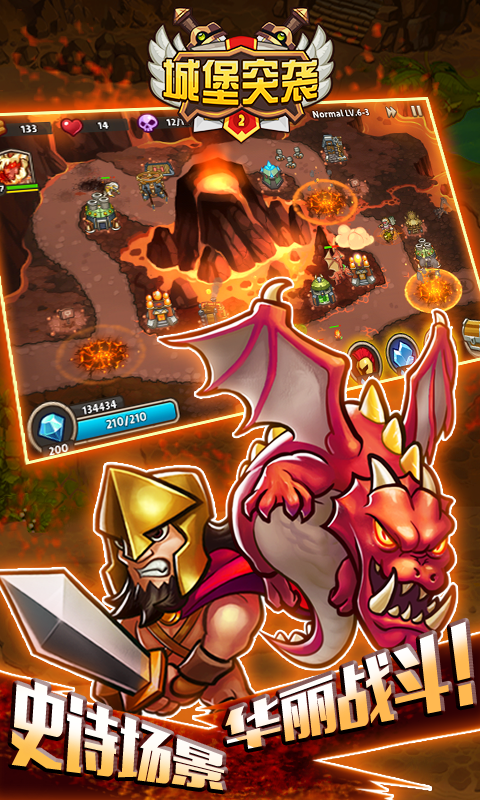新的战争时代已经来临,《城堡突袭2》强势登陆。你做好作战准备了吗?极具趣味性的宠物系统让游戏更加有深度,RPG式的英雄养成融合策略塔防元素玩法。比以往更大更具挑战性!在这场独特的拉锯战中你将再一次抵抗敌军的密集进攻,来保卫你的城堡。准备好进入神奇的魔法世界,这里有贵族骑士、智者巫师、神龙和刺客,正等你开始新的史诗冒险。