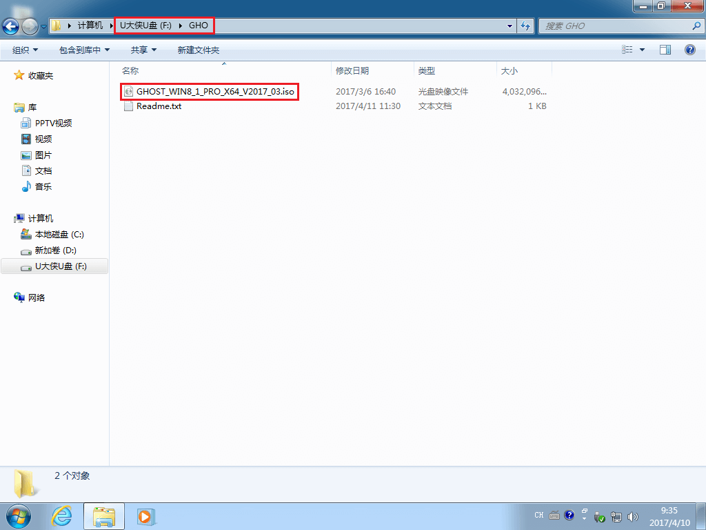 复制win8系统iso镜像包到u盘GHO文件夹内完成