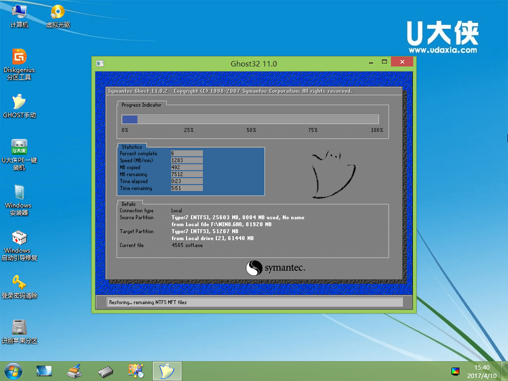 第三步:进入U大侠Win8PE系统后运行"U大侠PE一键装机"工具,安装Ghost Win8系统!